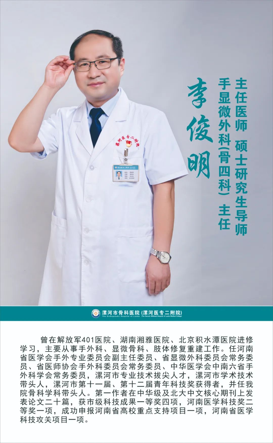 骨醫(yī)名家|漯河市骨科醫(yī)院手顯微外科 李俊明主任