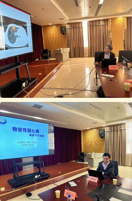 沙龍活動(dòng)現(xiàn)場(chǎng),主要采取學(xué)術(shù)講座與現(xiàn)場(chǎng)討論交流形式進(jìn)行。呼吸內(nèi)科周敬奎主任,共產(chǎn)黨員、沈昊昊主治醫(yī)師,心血管內(nèi)科二病區(qū)馬彥輝副主任醫(yī)師分別就《肺栓塞的規(guī)范診治》《高血壓心臟病的規(guī)范診治》《穩(wěn)定性冠心病基層診療指南》進(jìn)行精彩分享。講課結(jié)束后各位專家結(jié)合自身臨床經(jīng)驗(yàn)及個(gè)人專業(yè)特點(diǎn),圍繞具體病例進(jìn)行學(xué)術(shù)討論,進(jìn)一步提高了醫(yī)聯(lián)體基層醫(yī)務(wù)人員的理論知識(shí),參會(huì)人員紛紛表示受益匪淺。