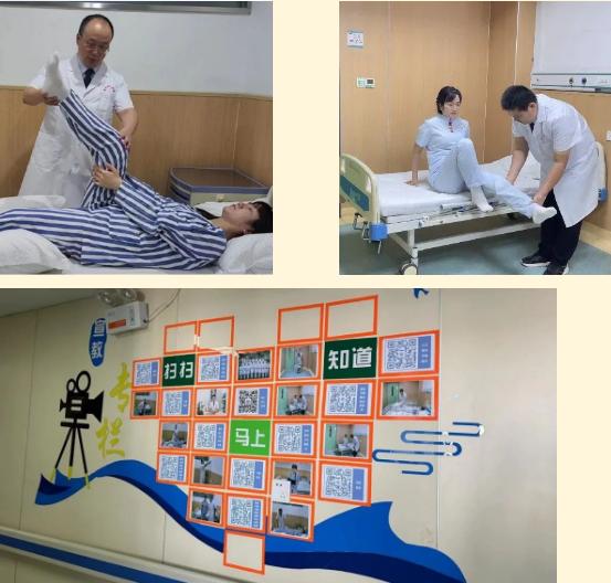 走進骨二科(創(chuàng)傷骨科、骨腫瘤),映入眼簾的就是獨具特色的健康宣教二維碼墻,這是科室優(yōu)質(zhì)護理服務工作的一道靚麗的風景線,也是提升患者就醫(yī)體驗的重要舉措。從入院宣教到圍術期健康指導、術后康復鍛煉再到出院宣教……每一個場景設計、每一個動作要領都是骨二科(創(chuàng)傷骨科、骨腫瘤)醫(yī)護人員結(jié)合工作實際,本色出演,通過自學制作科普視頻,并上傳至網(wǎng)絡生成二維碼來供患者觀看。為方便患者操作,科室特意設計并制作宣傳文化墻,將二維碼放置在文化墻上,患者只要掃一掃即可找到自己需要獲取的健康知識。體現(xiàn)了健康教育實時性、??菩?、個性化的特點,患者不僅從中學習健康知識,更提高遵醫(yī)行為的意識,提升了治療的依從性和滿意度。