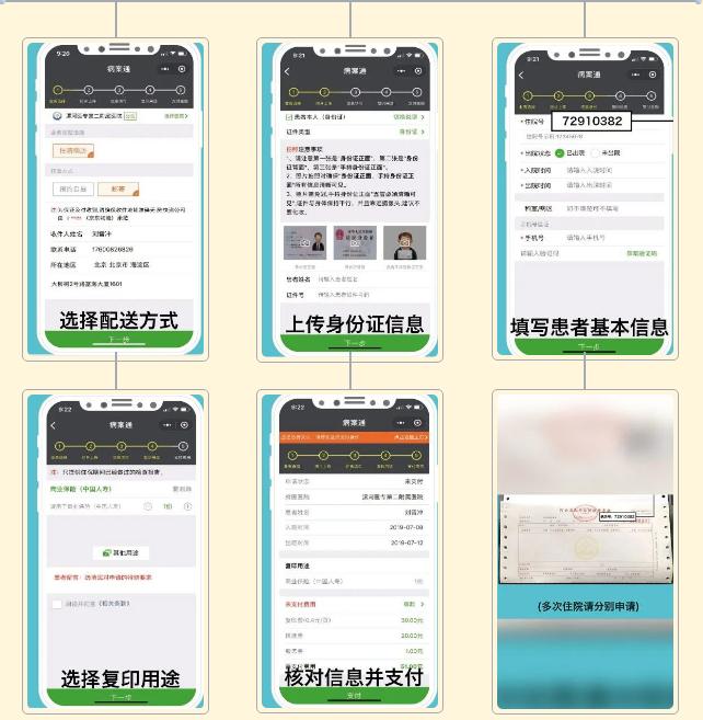 患者在院期間,如需辦理復(fù)印病歷,可掃碼關(guān)注“病案通”,選擇漯河醫(yī)專二附院,點(diǎn)擊“申請(qǐng)復(fù)印”并填寫相關(guān)信息,待病歷歸檔后將按照記載信息給予郵寄。