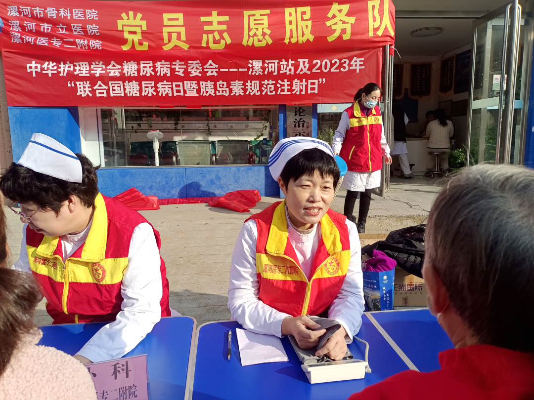 為深入貫徹黨的二十大精神,推動第二批主題教育走實(shí)走細(xì),提高人民群眾對糖尿病預(yù)防的重要認(rèn)識,倡導(dǎo)健康生活方式,11月14日,漯河市骨科醫(yī)院(漯河醫(yī)專二附院)組織由骨科、內(nèi)科、外科、婦產(chǎn)科、兒科、護(hù)理部、社工部等科室的黨員志愿者、醫(yī)療專家,來到岷江路岷山社區(qū)福星鑫園,開展第17個(gè)“世界糖尿病日”大型義診活動。