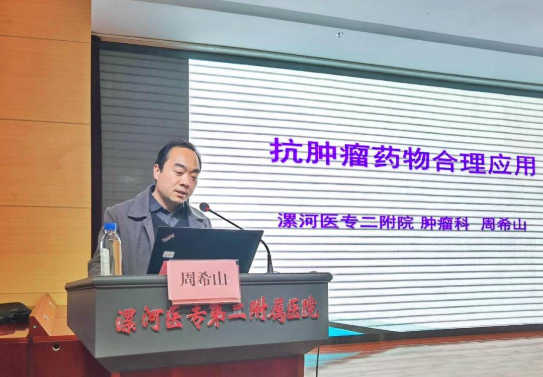 該院腫瘤血液科主任周希山主要從抗腫瘤藥物概述、循證醫(yī)學與抗腫瘤藥物應用及癌癥鎮(zhèn)痛藥物的合理使用等方面闡述抗腫瘤藥物的臨床合理使用。通過周希山的講解,與會人員更清楚了常用抗腫瘤藥物的分類、腫瘤合理用藥的一般原則與策略,明確了抗腫瘤藥物給藥劑量、給藥途徑和給藥間隔的選擇依據。周希山也對癌痛患者疼痛治療方案的基本原則進行詳細闡述,讓大家了解到慢性疼痛治療的新理念。