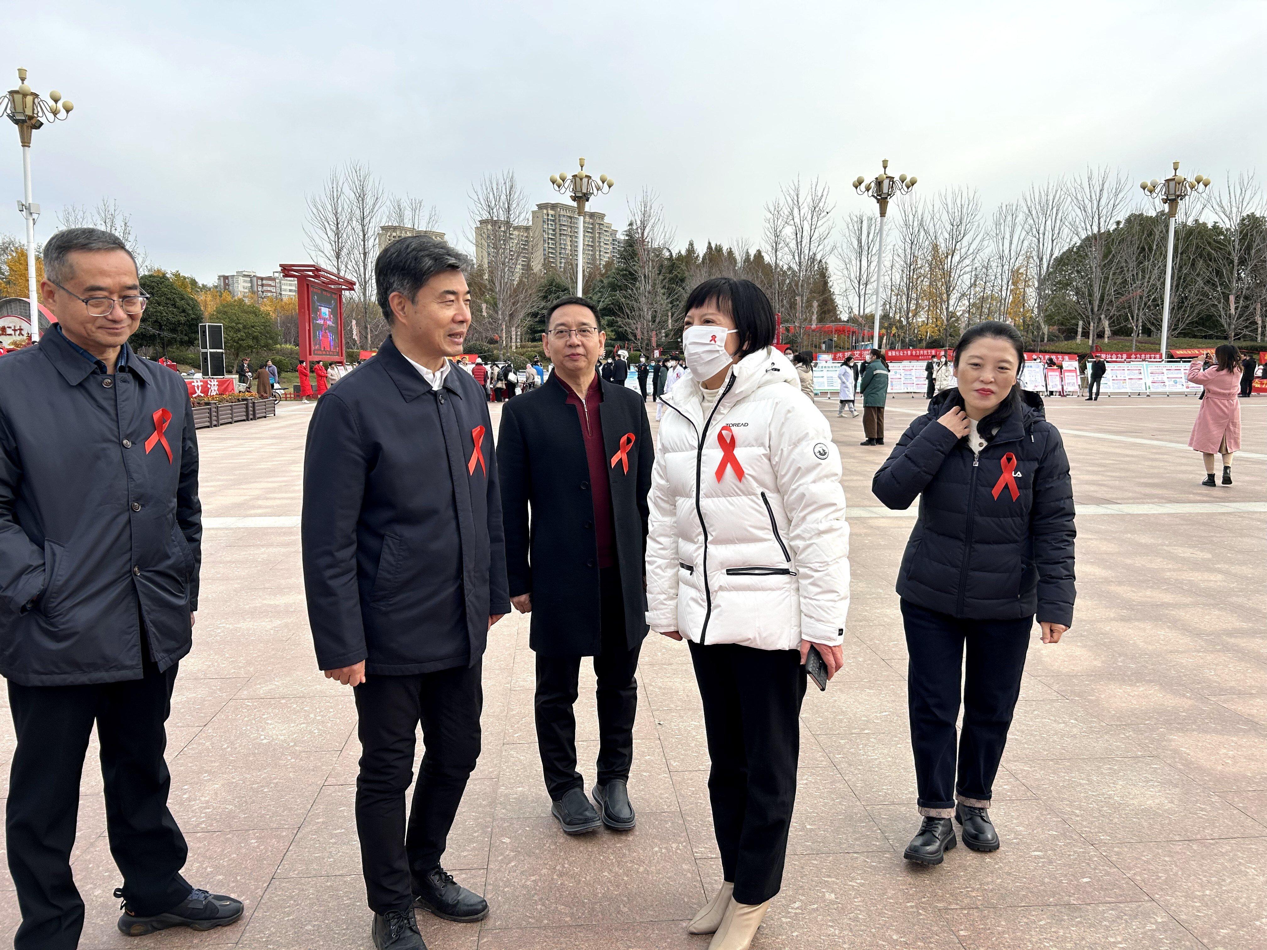 市衛(wèi)健委主任宋耀生、副主任李業(yè)武等領(lǐng)導(dǎo)蒞臨市二院義診宣傳活動(dòng)現(xiàn)場,親切慰問義診專家,詢問醫(yī)院抗艾防艾工作開展情況。
