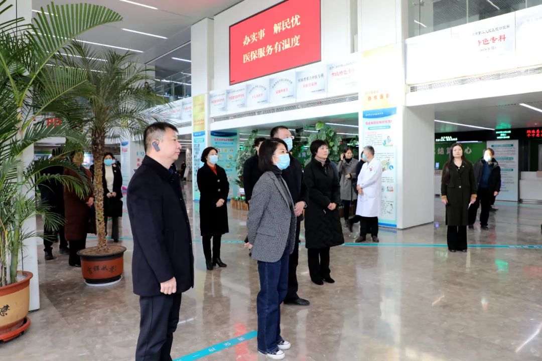 12月19日上午,副市長(zhǎng)宋琰琰蒞臨市二院,調(diào)研門(mén)診慢性病全流程線上申報(bào)認(rèn)定、醫(yī)保一站式服務(wù)情況及醫(yī)保相關(guān)工作,市醫(yī)保局黨委書(shū)記、局長(zhǎng)李紅衛(wèi)等參加調(diào)研。市二院黨委書(shū)記魏松、院長(zhǎng)王瑾及醫(yī)院領(lǐng)導(dǎo)班子成員、部分職能科長(zhǎng)等陪同調(diào)研。