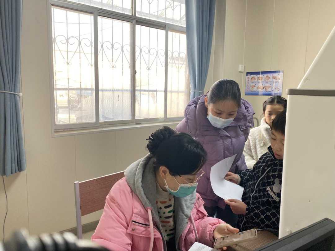 兒童保健科謝秀杰副主任醫(yī)師給兒童進行身高、體重的篩查。