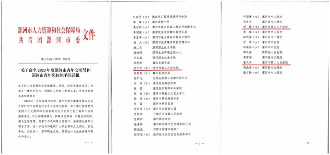 并肩奮戰(zhàn)展風(fēng)采 挺膺擔(dān)當(dāng)踐使命——市二院3人被評為2023年度漯河市青年崗位能手