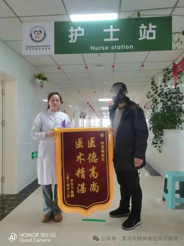 3月4日一大早,一名患者家屬懷著一顆無比感恩的心來到了漯河市精神病醫(yī)院精神四科,感謝我院孫亞南醫(yī)生及全體醫(yī)護人員,并送上一面錦旗,他的患者是一名在校學生,在家不出門,不與人溝通,緊張、害怕,嚴重影響到日常生活,不能正常上學,經(jīng)門診收住院,入院后,孫醫(yī)生耐心詢問患者的病情,根據(jù)患者的癥狀進行病情評估,制定了詳細的治療方案,通過一個多月的治療,患者癥狀明顯改善。能與人交流了,臉上也露出了久違的笑容。家屬對醫(yī)院的診療和服務水平非常滿意!