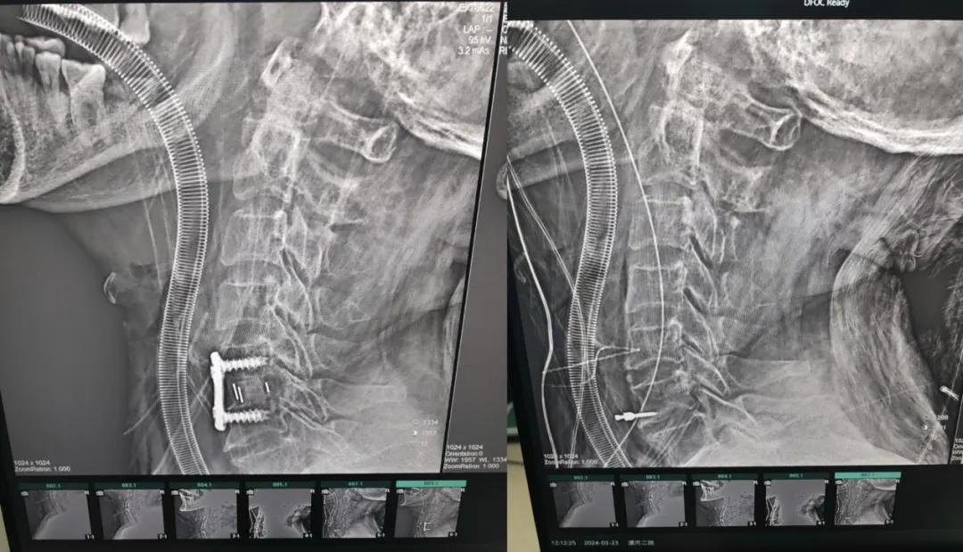 經(jīng)過縝密的術(shù)前準備和手術(shù)計劃,在鄭大一附院神經(jīng)外科張風(fēng)江教授的指導(dǎo)下,神經(jīng)外科團隊順利為患者實施“顯微鏡下頸椎前路C5/C6椎間盤切除椎間融合+內(nèi)固定術(shù)”,手術(shù)時間不到1小時。術(shù)后患者恢復(fù)情況良好。