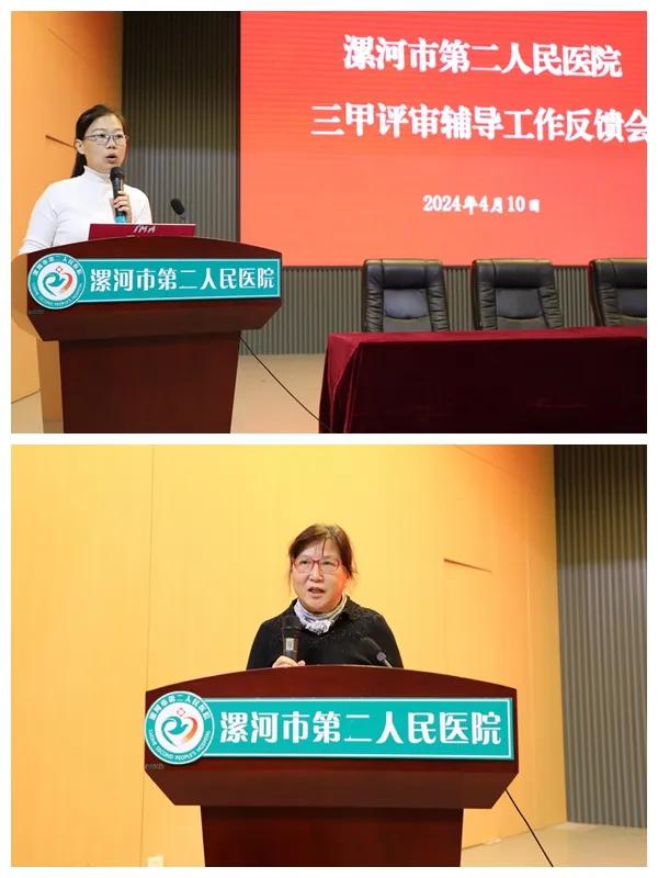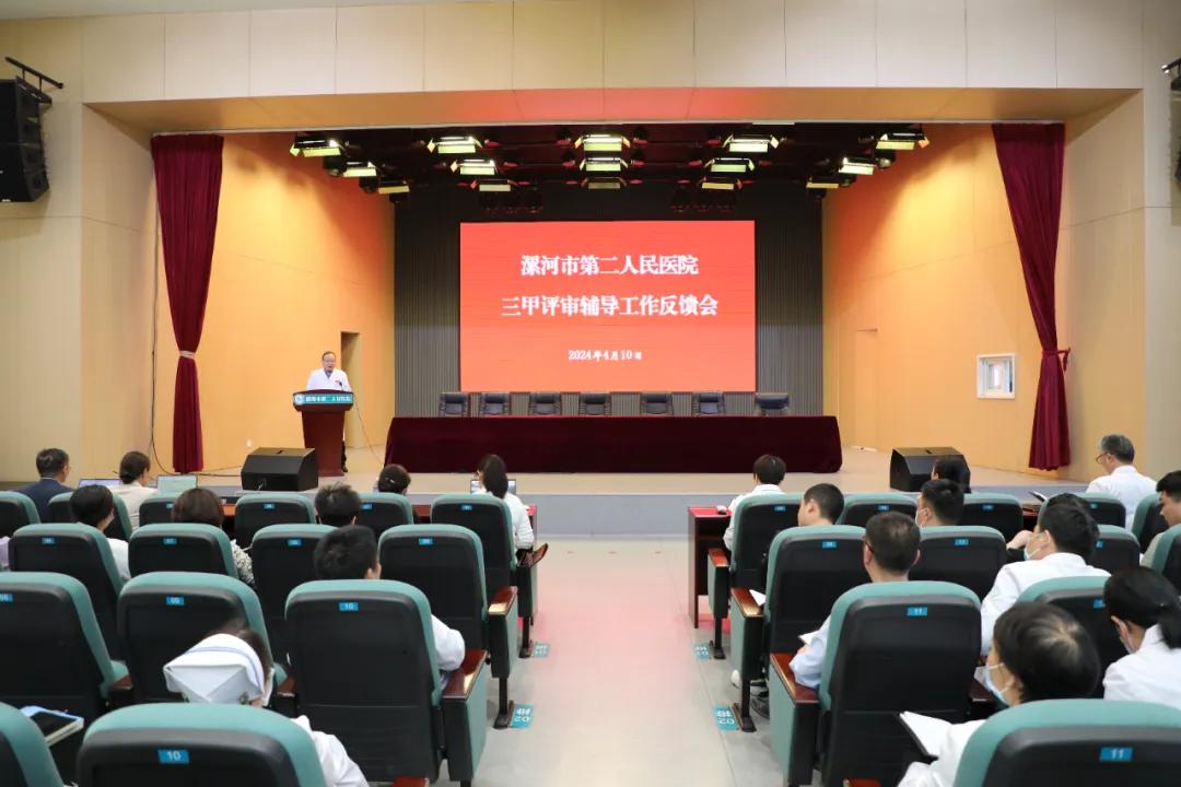 4月10日下午,針對(duì)3天的輔導(dǎo),醫(yī)院召開了三甲創(chuàng)建等級(jí)評(píng)審第二輪輔導(dǎo)工作反饋會(huì),院領(lǐng)導(dǎo)班子、全體中層干部及全院數(shù)據(jù)管理員200余人參加會(huì)議。會(huì)議由副院長張曉東主持。