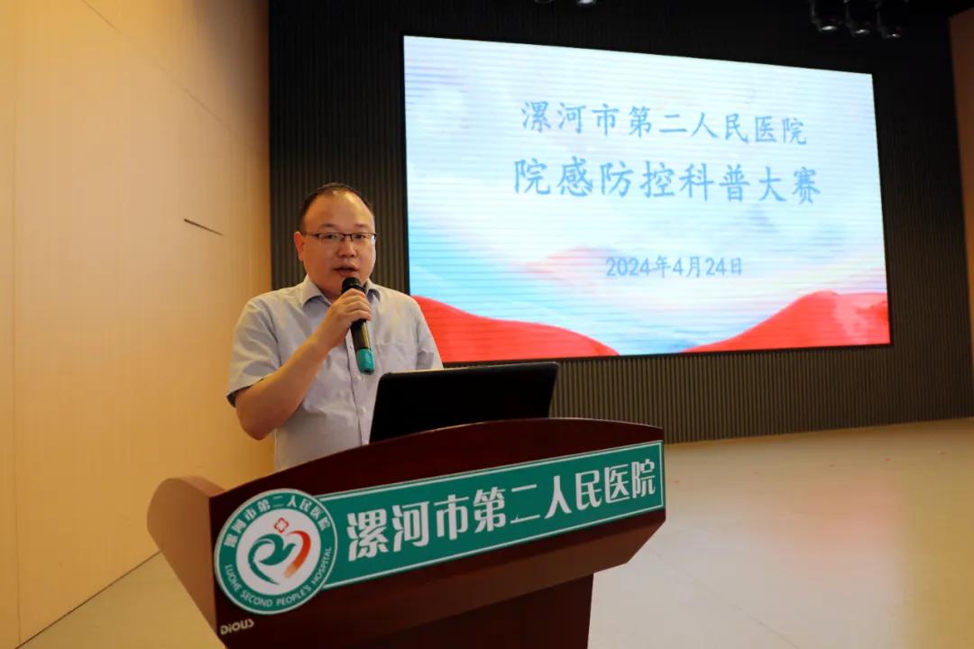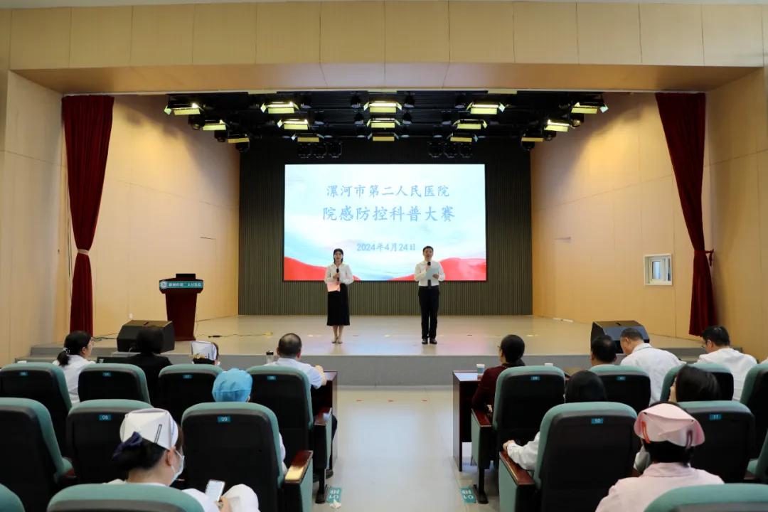 4月24日下午,市二院在12樓學(xué)術(shù)報(bào)告廳舉辦“醫(yī)療安全,感控先行”科普大賽,副院長(zhǎng)謝彩玲、副院長(zhǎng)張曉東、工會(huì)主席李世學(xué)及各科室代表200余人參加了活動(dòng)。