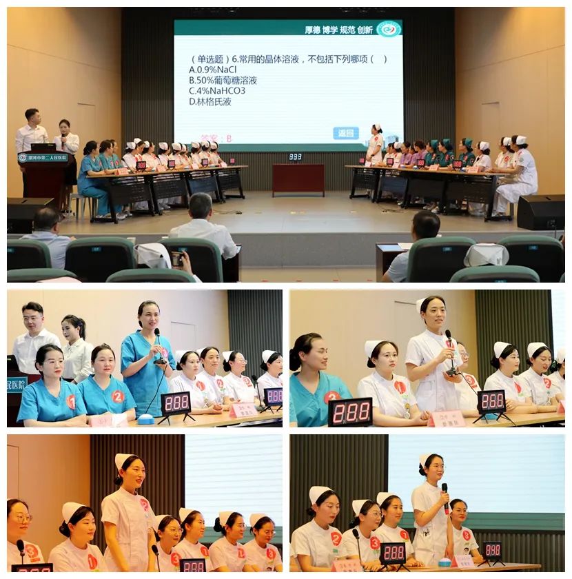 此次競賽內容涵蓋基礎護理、??谱o理、護理團體標準、核心制度、應急預案等專業(yè)知識,分為初賽和決賽。此次活動,共有25個護理單元75名選手參加,經過前期的層層選拔,8支代表隊24名選手參加了決賽。比賽現場氣氛火熱,高潮迭起,必答題環(huán)節(jié)各隊選手平分秋色,比分不相上下,隨著搶答環(huán)節(jié)的到來,比賽進入白熱化狀態(tài),各隊選手快速思考,競相搶答,上演了一場精彩紛呈的腦力與速度的較量;在風險題環(huán)節(jié),各隊選手不甘落后,幾乎是在題目出現的瞬間就已經有人按下了搶答器并給出準確的答案,體現他們扎實的理論知識和深厚的實踐功底。