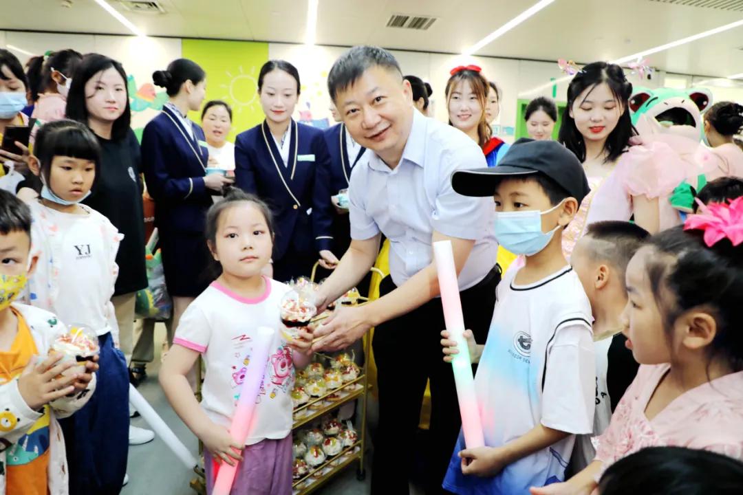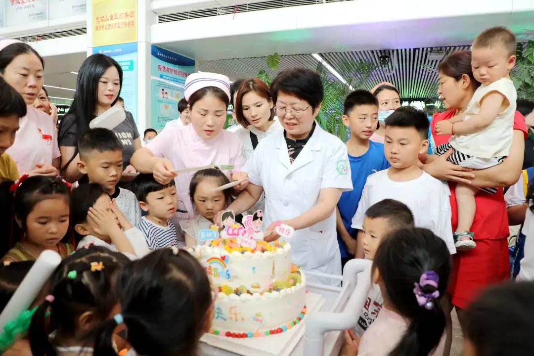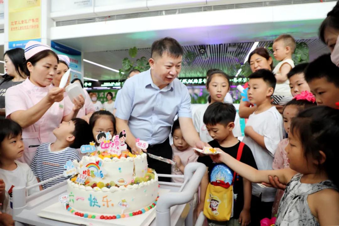 在門診大廳,黨委書記魏松、院長王瑾與兒科專家、護士長、孩子們一起切下節(jié)日蛋糕,并代表全院醫(yī)護人員對孩子們表示衷心的祝福,希望孩子們健康快樂成長?,F(xiàn)場,醫(yī)護人員化身白雪公主、花仙子、小黃人、網(wǎng)紅青蛙與小朋友們熱情互動,友好交流,派發(fā)精心準備的節(jié)日禮物。