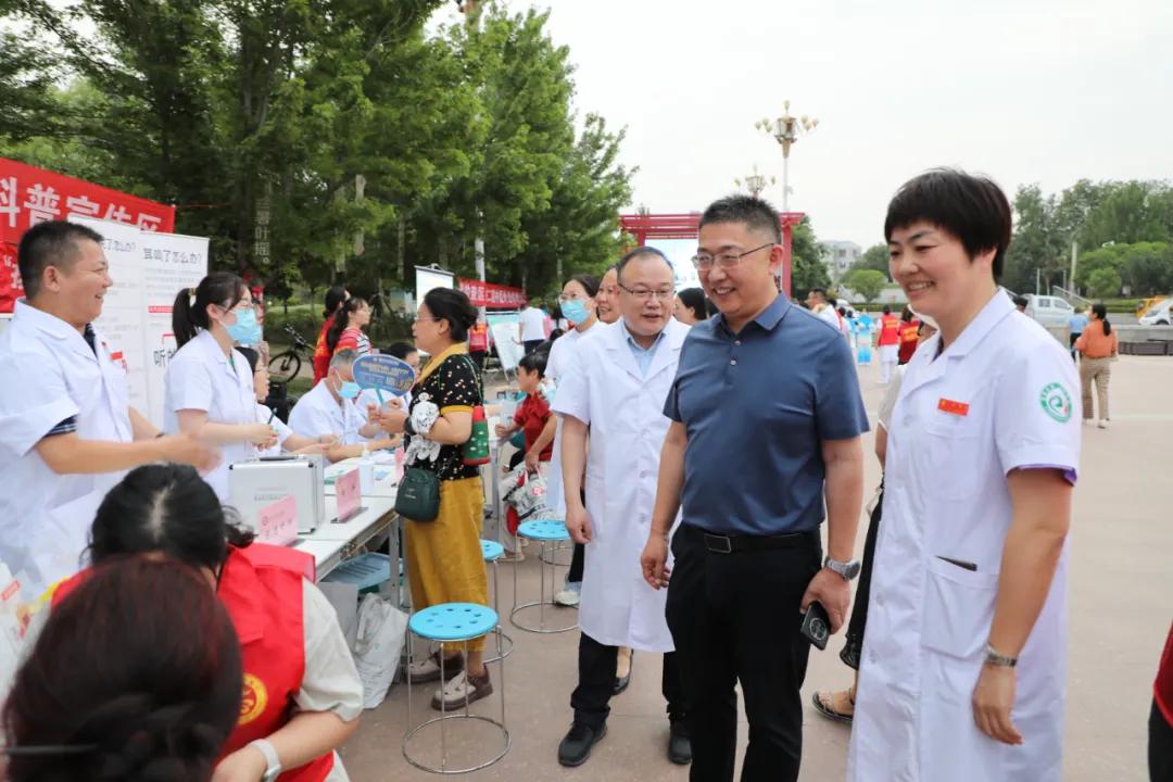 5月31日晚7時(shí),根據(jù)市衛(wèi)健委統(tǒng)一部署,市二院在紅楓廣場(chǎng)開(kāi)展了“漯河市衛(wèi)生健康青年人才發(fā)展聯(lián)盟大型義診活動(dòng)”,在炎炎夏日為廣大市民送去陣陣清涼。市衛(wèi)健委黨組副書記、副主任王向良帶領(lǐng)市衛(wèi)健委人事科科長(zhǎng)王滿華、醫(yī)政科長(zhǎng)王彩紅等蒞臨現(xiàn)場(chǎng)并給予指導(dǎo)。