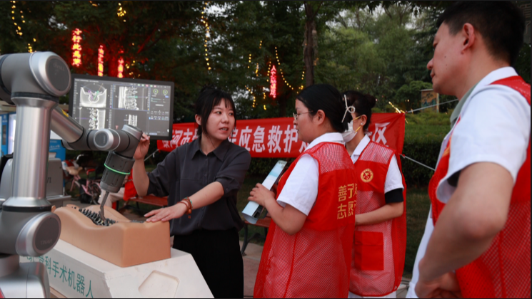 除了提供義診服務(wù)外,醫(yī)療專家志愿者們還進行了“天璣Ⅱ”骨科機器人展示,向市民介紹了該機器人在數(shù)字智能醫(yī)療領(lǐng)域的應(yīng)用、技術(shù)特點、臨床優(yōu)勢以及實際案例等方面內(nèi)容,將優(yōu)質(zhì)的醫(yī)療資源和先進的醫(yī)療技術(shù)帶到基層老百姓身邊。