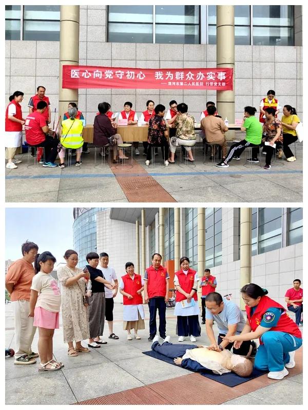 義診現(xiàn)場,市二院紀委書記孟德陽帶領消化腎病科、心血管內科、神經(jīng)內科、中醫(yī)針灸科、兒科等專家及黨員志愿者,為居民測量血壓、聽診、進行身體檢查,并提供了耳穴壓豆治療。對于居民們提出的健康問題,專家們仔細傾聽、耐心解釋,有針對性地提出科學預防、治療建議、用藥指導及注意事項等;同時,急診科醫(yī)務人員現(xiàn)場講解、演示成人心肺復蘇技術、兒童海姆立克急救法。義診活動吸引了在廣場休閑、鍛煉的群眾積極參與,駐足觀看、上手練習;受到了社區(qū)群眾的廣泛贊譽。