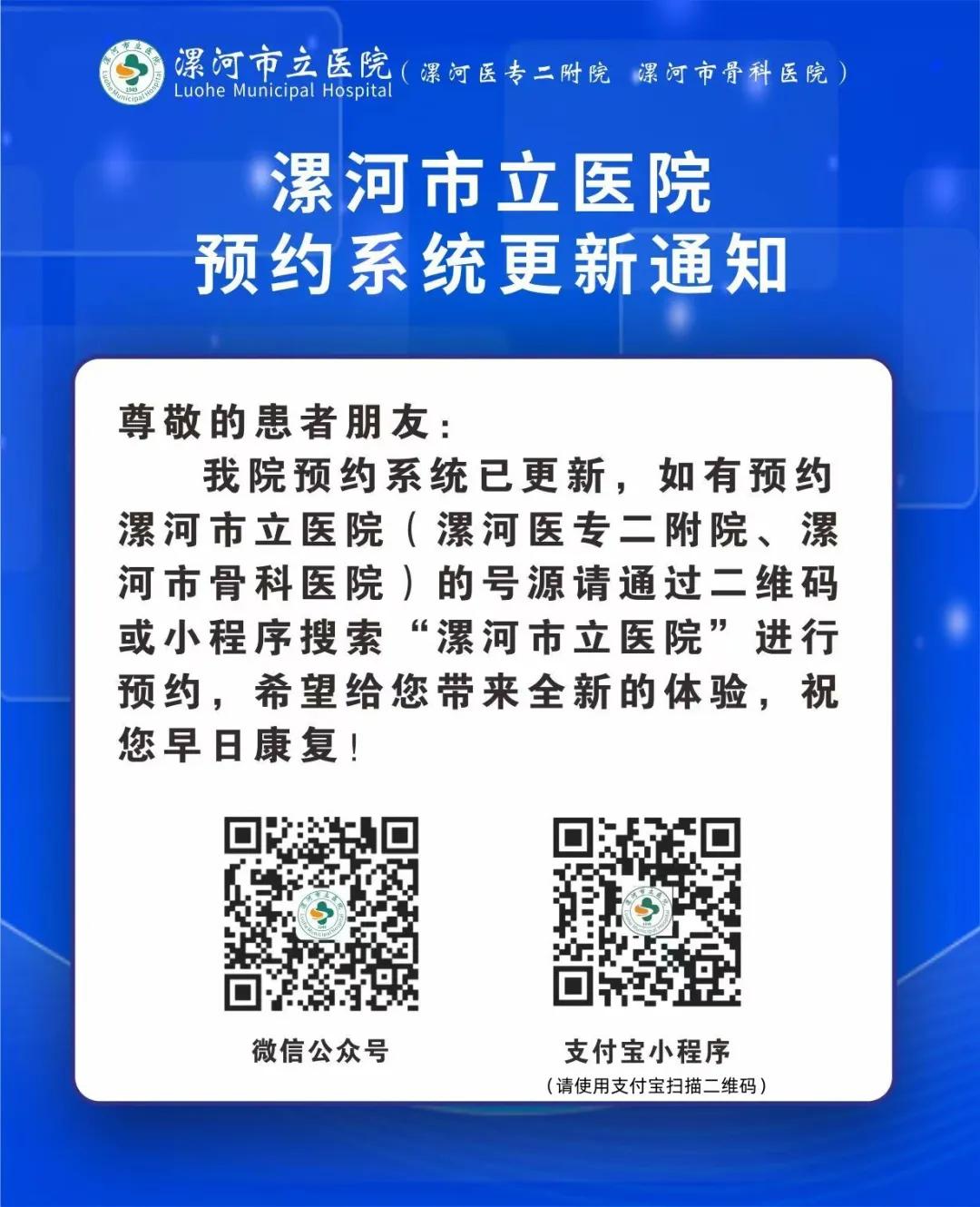 漯河市立醫(yī)院預(yù)約系統(tǒng)更新通知