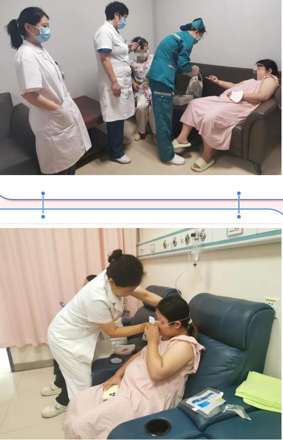 1分鐘后,婦產(chǎn)科張秀麗醫(yī)生迅速來到檢驗科,2分鐘后,急診科的李想醫(yī)生、王靜護士推著平車,帶著急救設(shè)備也來到檢驗科。他們爭分奪秒,分工合作,婦產(chǎn)科醫(yī)生查看孕婦及胎兒基本情況,急診科醫(yī)生、護士立即測量手指血糖、血壓等操作。隨后,大家快速的把患者轉(zhuǎn)移到婦產(chǎn)科門診胎心監(jiān)護室,立即進行吸氧、胎心監(jiān)護等操作。