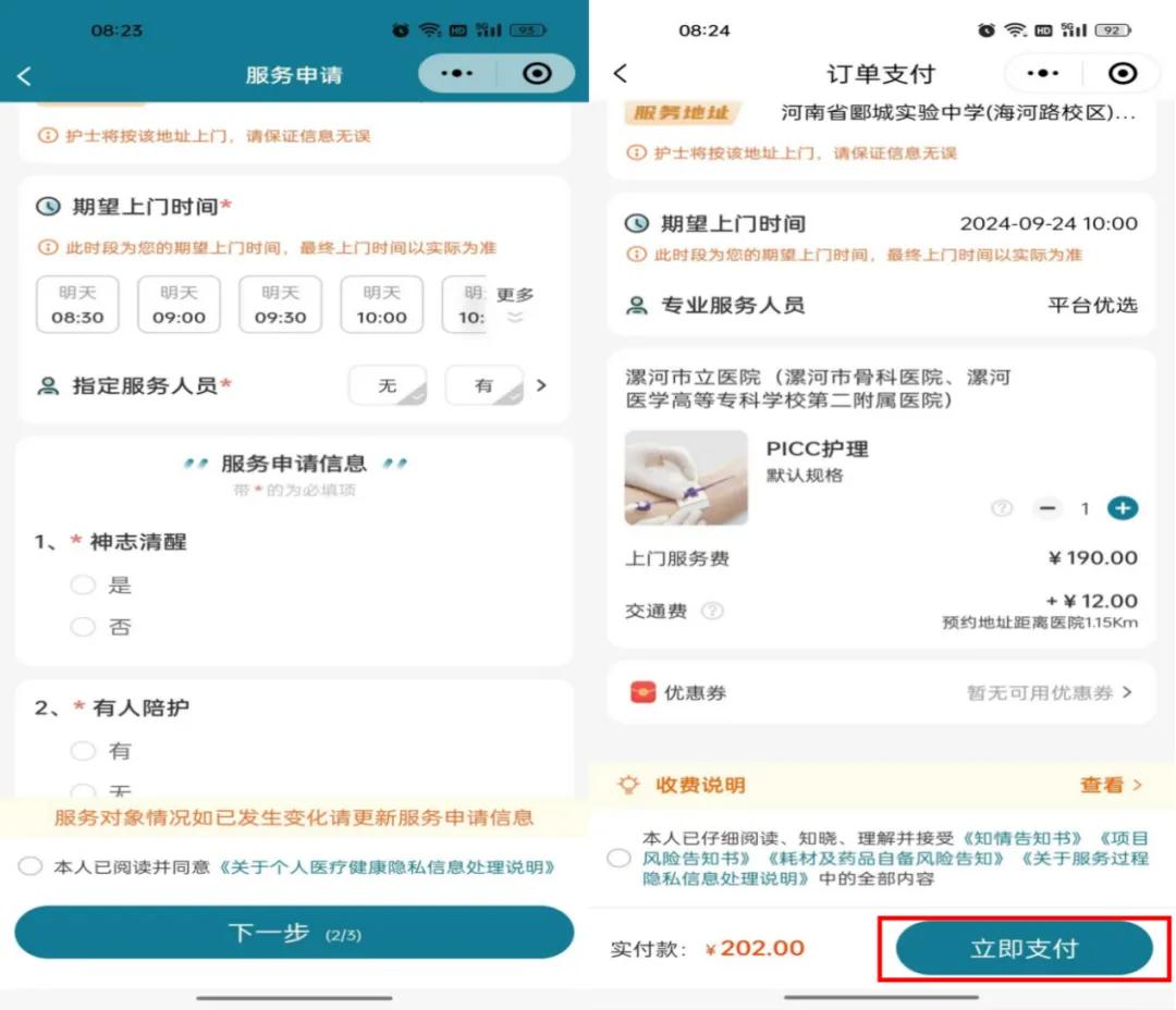 4.各項信息填寫后,支付訂單,護(hù)士接單后會與下單人電話聯(lián)系再次確認(rèn)。