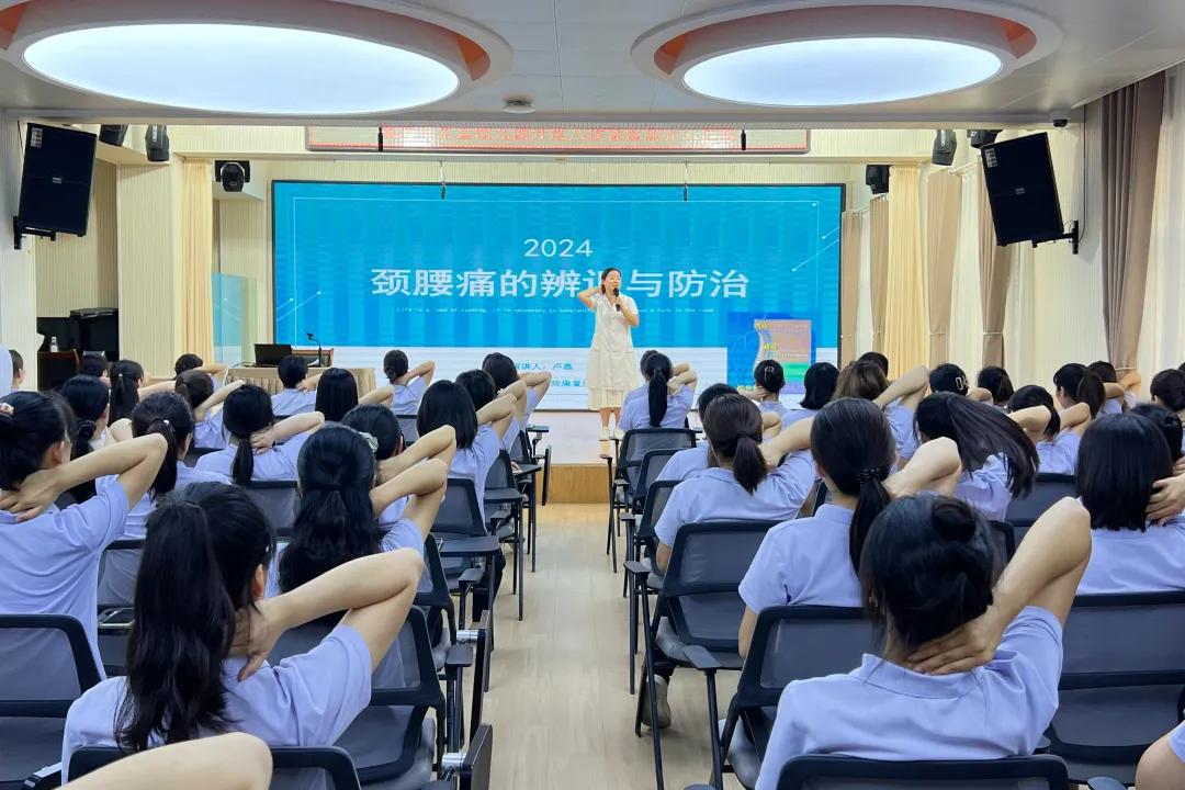 培訓現(xiàn)場,市中醫(yī)院宣講團成員康復科副主任盧鑫用通俗易懂的語言,通過PPT,圖文并茂、深入淺出地從頸椎病的類型、癥狀、中醫(yī)治療和預防等方面做了詳細的講解,讓大家了解在日常生活中如何預防頸椎病和需要注意的事項。同時囑咐大家在課間休息時一定要外出活動一下肢體。