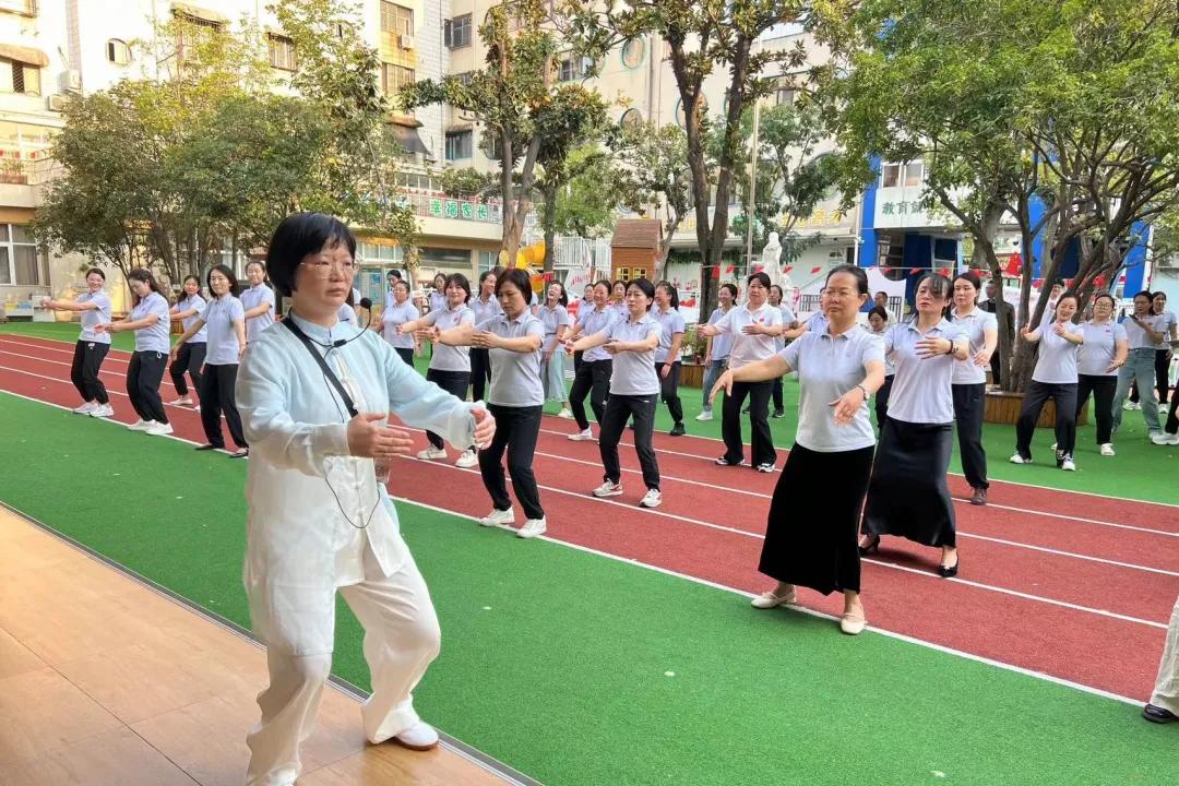 張瑞護士長現(xiàn)場教授大家健身氣功“八段錦”。還詳細介紹了八段錦的重要性以及練習要點,并將動作進行分解示范,帶領大家靜心感受八段錦修身養(yǎng)性、陶冶情操的運動內(nèi)涵。八段錦簡單易學,適用人群范圍廣,經(jīng)常練習八段錦不僅預防頸椎病,還能夠幫助調(diào)氣和血、舒筋活絡、調(diào)節(jié)機體各個臟腑機能。老師們熱情高漲,反復練習,仔細揣摩動作細節(jié)。