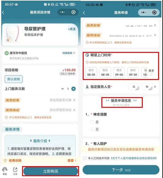 三、閱讀服務(wù)須知,點(diǎn)擊“立即購(gòu)買”;選擇預(yù)約時(shí)間,填寫服務(wù)申請(qǐng)信息。