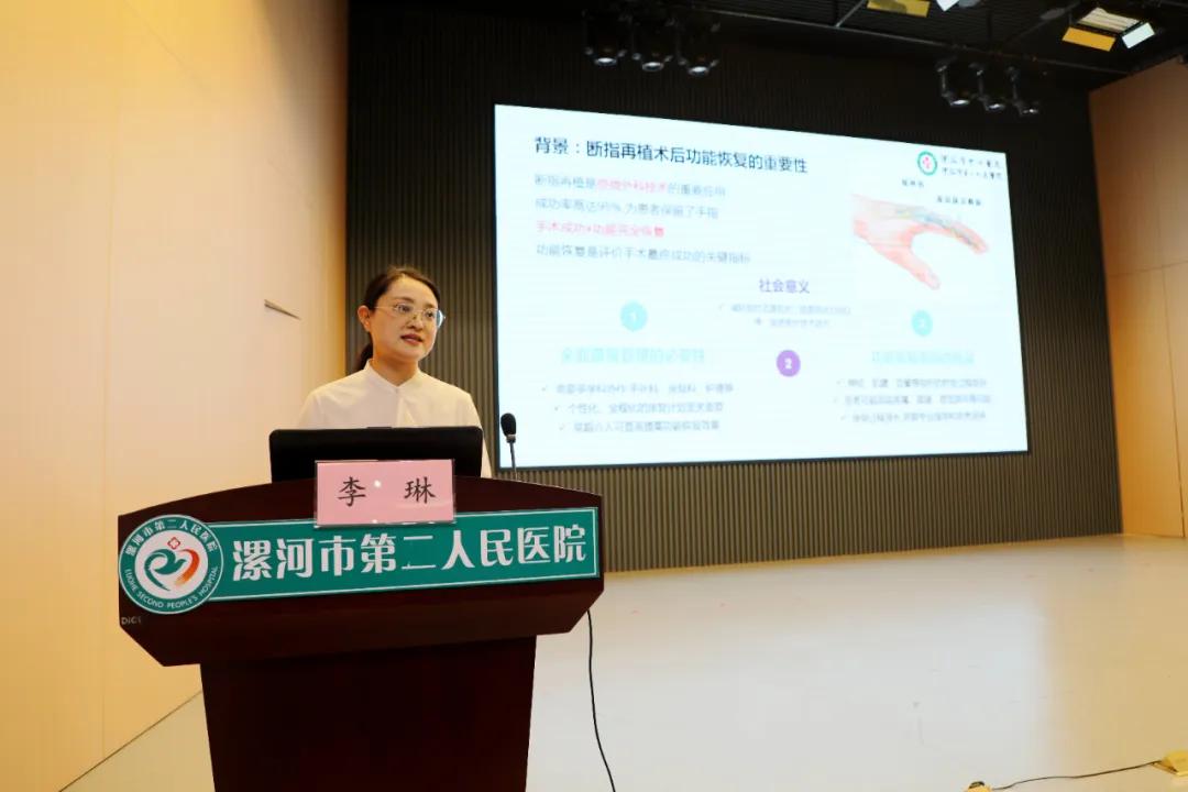 學(xué)術(shù)交流會(huì)上,市中心醫(yī)院創(chuàng)傷骨科外科護(hù)理規(guī)培基地秘書(shū)李琳講解了《全程康復(fù)護(hù)理管理模式在斷指再植患者術(shù)后功能恢復(fù)中的應(yīng)用》,分享醫(yī)院的全程康復(fù)護(hù)理管理模式,實(shí)現(xiàn)了從術(shù)前準(zhǔn)備到長(zhǎng)期隨訪的全程管理,提高了康復(fù)治療的標(biāo)準(zhǔn)性和個(gè)體化水平。