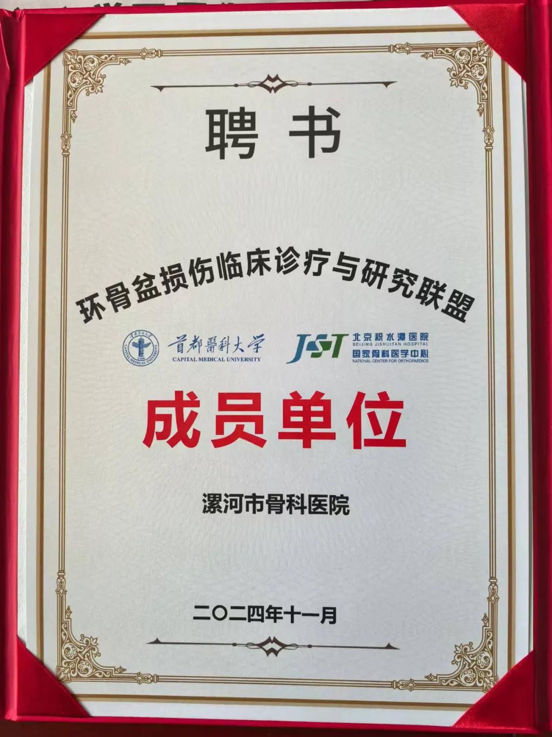 此次受邀加入該聯(lián)盟,為我院環(huán)骨盆損傷治療的進(jìn)一步發(fā)展提供了重要契機(jī),也標(biāo)志著我院在骨盆微創(chuàng)救治領(lǐng)域邁上新臺(tái)階。未來(lái),漯河市骨科醫(yī)院將充分發(fā)揮聯(lián)盟成員優(yōu)勢(shì),與聯(lián)盟各單位實(shí)現(xiàn)資源共享、優(yōu)勢(shì)互補(bǔ)、協(xié)同發(fā)展,并以此推動(dòng)本院以及漯河市及周邊地區(qū)環(huán)骨盆損傷臨床診療領(lǐng)域的高質(zhì)量發(fā)展,造福更多的患者。(盧 闖 劉 旭 袁錦鈺)