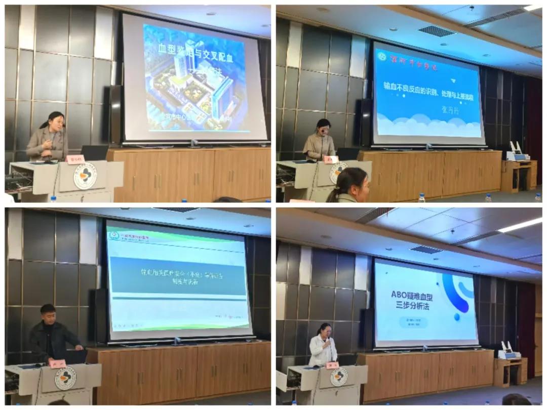 第二部分是專題培訓會,首先由漯河市中心醫(yī)院賈小村老師為大家分享了《血型鑒定與交叉配血》,其次,由漯河市中醫(yī)院張丹丹老師為大家?guī)怼遁斞涣挤磻淖R別、處理與上報》,緊接著,臨潁縣人民醫(yī)院陳陽主任給大家匯報了《輸血相關不良事件的報告》,最后,漯河醫(yī)專二附院劉歡老師給大家?guī)砹恕禔BO疑難血型三步分析法》。這些老師從實際工作出發(fā),具體分析了輸血工作中可能遇到的問題及注意事項,無私分享了寶貴的工作經(jīng)驗,會議在掌聲中圓滿結束。