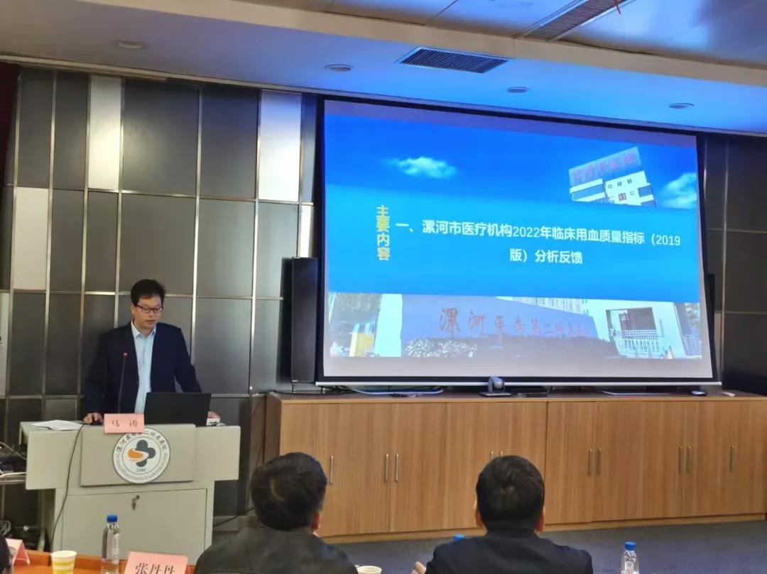 會議接下來分為兩個部分進行,第一部分是質控工作會,由漯河市臨床用血質控中心主任馬濤主持,馬濤主任分析了漯河市各個二級以上醫(yī)療機構的臨床用血質量控制十大指標,對存在的問題做出了具體的分析指導,鼓勵大家再接再厲繼續(xù)做好輸血質控工作。