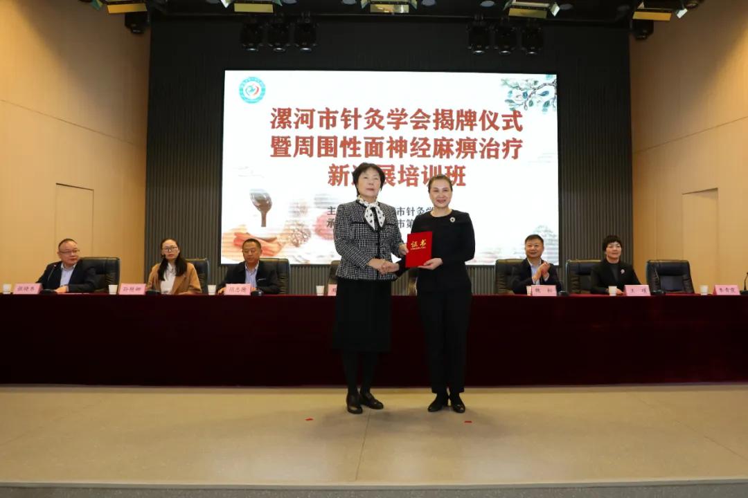 隨后,各參會領(lǐng)導向漯河市針灸學會會長、副會長頒發(fā)了證書。