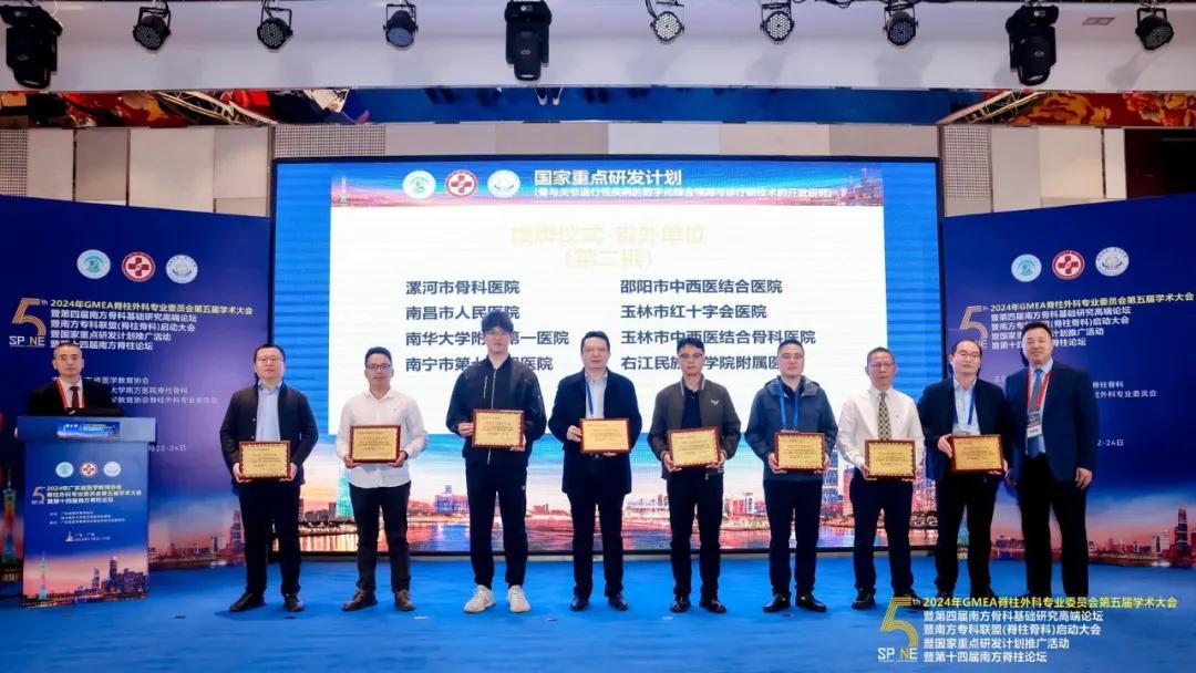 11月22日—24日,由廣東省醫(yī)學教育協(xié)會、南方醫(yī)科大學南方醫(yī)院脊柱骨科聯(lián)合主辦,廣東省醫(yī)學教育協(xié)會脊柱外科專業(yè)委員會承辦的“2024年GMEA脊柱外科專業(yè)委員會第五屆學術大會”在廣東廣州成功舉行。在南方??坡?lián)盟(脊柱骨科)啟動大會暨國家重點研發(fā)計劃推廣活動上,漯河市骨科醫(yī)院(漯河醫(yī)專二附院、漯河市立醫(yī)院)榮獲“國家重點研發(fā)計劃-骨與關節(jié)退行性疾病的數(shù)字化綜合預測與診療新技術的開發(fā)研究課題推廣單位”與“南方??坡?lián)盟單位(脊柱外科)”雙項授牌!