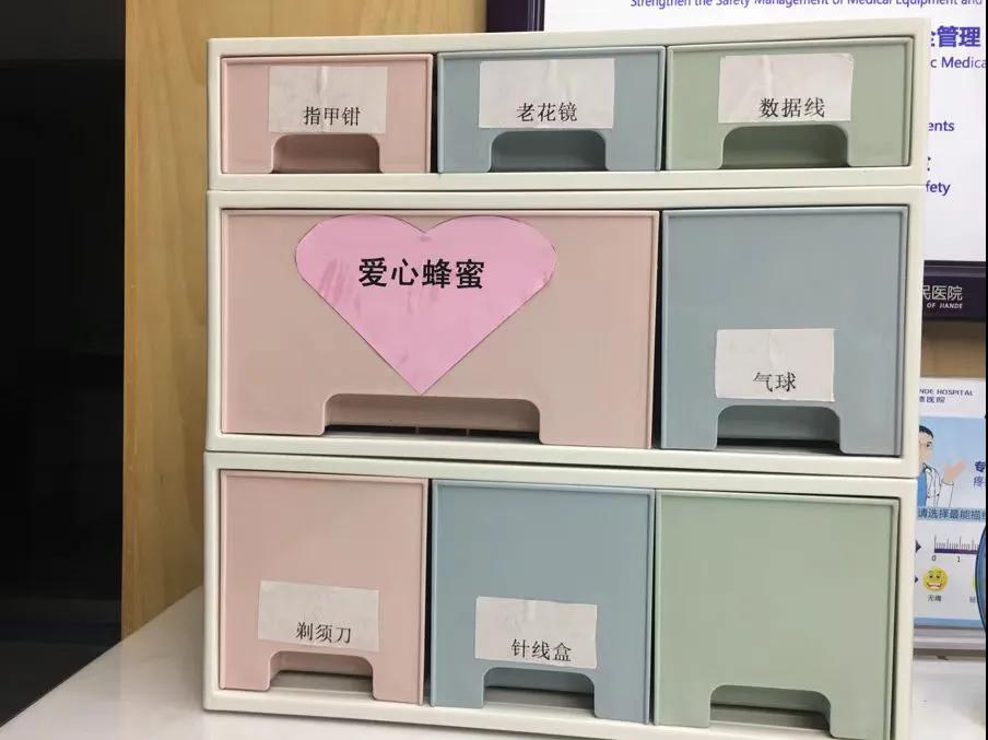 在工作中,經(jīng)常有患者或家屬因緊急住院,未準(zhǔn)備水杯、牙刷、牙膏、紙巾、手機(jī)充電線等日常用品,而向我們尋求幫助,這些住院患者日常生活中的不便之處,醫(yī)護(hù)人員都看在眼里,記在心上。鑒于原有的便民箱物品已經(jīng)不能完全滿足患者的需求,科室護(hù)士長(zhǎng)組織對(duì)全科醫(yī)護(hù)人員、患者及家屬進(jìn)行調(diào)研,收集建議并增加了患者使用頻率高的物品,方便患者根據(jù)自己的需求借用,解決患者和家屬的燃眉之急,為患者提供更加溫馨、舒適的住院環(huán)境。