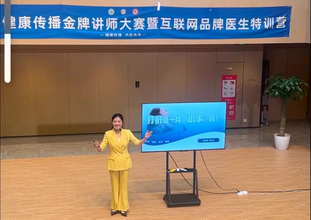 今年3月起,周會芳就憑借演講作品《打鼾是一件“小事”嗎》,榮獲河南省第二屆健康傳播金牌講師大賽二等獎佳績。在隨后的比賽中,她更是一路過關(guān)斬將,從全國一千余名參賽人員中脫穎而出,最終入圍全國總決賽。
