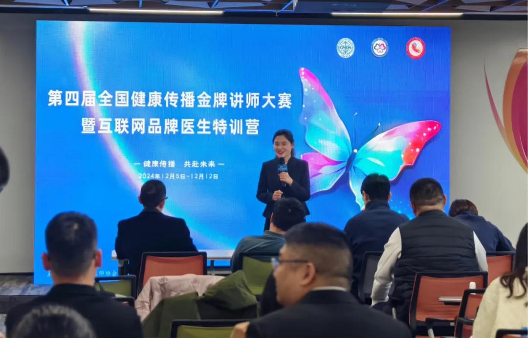 12月5日,第四屆健康傳播金牌講師大賽暨互聯(lián)網(wǎng)品牌醫(yī)生特訓營在河北雄安健康中國傳播大廈正式拉開帷幕,周會芳同來自全國各地五大賽區(qū)的100位業(yè)內(nèi)知名健康傳播達人、網(wǎng)絡(luò)大V共同角逐。此次大賽,由院士領(lǐng)隊,博導指導,設(shè)有個人風采展示、情景劇展演、醫(yī)學人文演講、1分鐘即興科普、視頻拍攝剪輯、12小時極限拍攝網(wǎng)劇、5分鐘授課能力展示等8個環(huán)節(jié),她一步步突破自我,最終躋身全國前六十強。