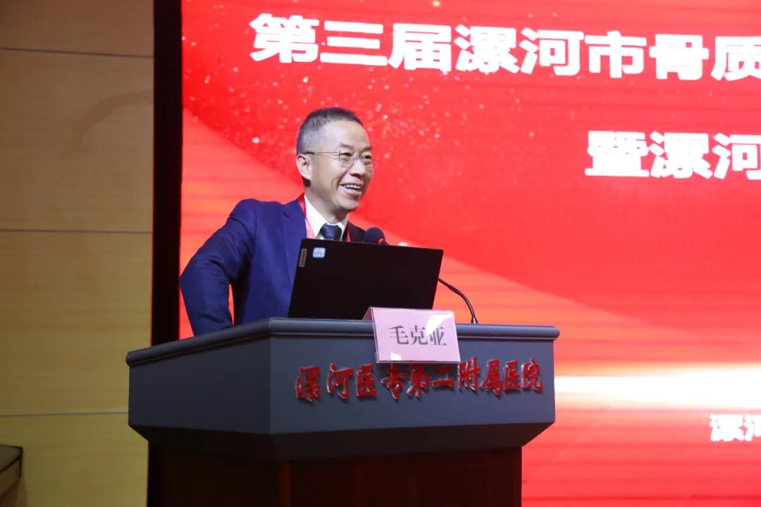 中國(guó)人民解放軍總醫(yī)院毛克亞教授首先對(duì)漯河市骨科醫(yī)院的邀請(qǐng)表示感謝,并表示本次骨質(zhì)疏松和骨礦鹽疾病分會(huì)學(xué)術(shù)年會(huì)為業(yè)內(nèi)同仁搭建了一個(gè)互相學(xué)習(xí)、交流互鑒的良好平臺(tái),為豫中南地區(qū)的骨質(zhì)疏松、骨礦鹽疾病與骨科康復(fù)的發(fā)展做出了巨大的貢獻(xiàn)。他表示會(huì)盡己所能,與各位同仁分享專(zhuān)業(yè)前沿動(dòng)態(tài),增強(qiáng)學(xué)術(shù)交流,也預(yù)祝本次大會(huì)取得圓滿(mǎn)成功。