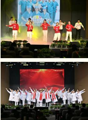 院領(lǐng)導(dǎo)班子也全員參與,登上舞臺表演了歌曲、詩朗誦、太極拳、相聲、三句半等節(jié)目,他們?nèi)橥度氲谋硌?,展現(xiàn)出了十足的活力,拉近了與職工之間的距離,讓大家感受到了醫(yī)院這個大家庭的溫暖與團(tuán)結(jié),他們的登場也瞬間點燃了現(xiàn)場的氣氛,將聯(lián)歡會的氛圍推向了高潮。