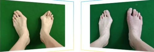 患者今年39歲,10年前發(fā)現(xiàn)雙足踇趾向外偏,1年前自覺畸形加重,活動后關(guān)節(jié)紅腫疼痛明顯,休息后緩解,活動后再次加重,病情反復(fù)并逐漸加重。