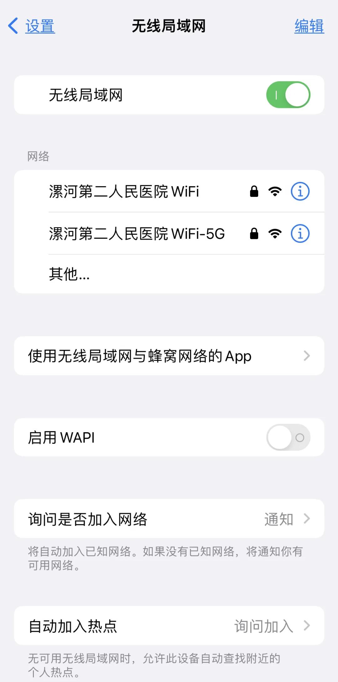 3.用手機(jī)進(jìn)入設(shè)置搜索無(wú)線局域網(wǎng)“漯河第二人民醫(yī)院WiFi”,輸入密碼進(jìn)行連接。