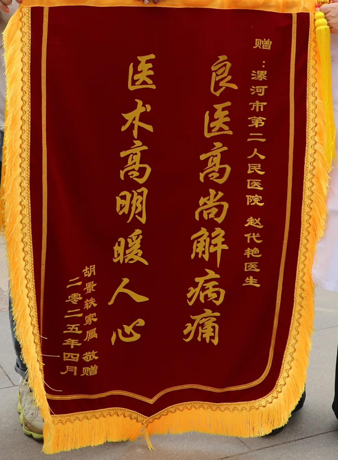 一名家住駐馬店市西平縣的患兒家長(zhǎng)帶著孩子專(zhuān)程來(lái)到活動(dòng)現(xiàn)場(chǎng),找到市二院小兒心血管神經(jīng)血液科主任醫(yī)師趙代艷,送上一面寫(xiě)有“良醫(yī)高尚解病痛 醫(yī)術(shù)高明暖人心”的錦旗,以表達(dá)全家的感激之情。“近兩個(gè)月,每周我都帶孩子前往市二院復(fù)查,趙代艷醫(yī)生細(xì)致入微的關(guān)懷與耐心,都令我深深感動(dòng)。每一次復(fù)查,她都不厭其煩地叮囑各項(xiàng)注意事項(xiàng),從日常飲食到生活作息,面面俱到。”孩子家長(zhǎng)感慨地說(shuō)道。