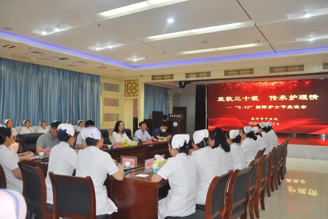 當日下午,漯河市中醫(yī)院護理部組織召開了“致敬三十載 傳承護理情”為主題的護士節(jié)座談會。會議由副院長閆丙川主持,楊軼及院領(lǐng)導(dǎo)班子成員出席并講話,13名三十年護齡護理人員、各科室護士長及優(yōu)秀護士70余人參加。
