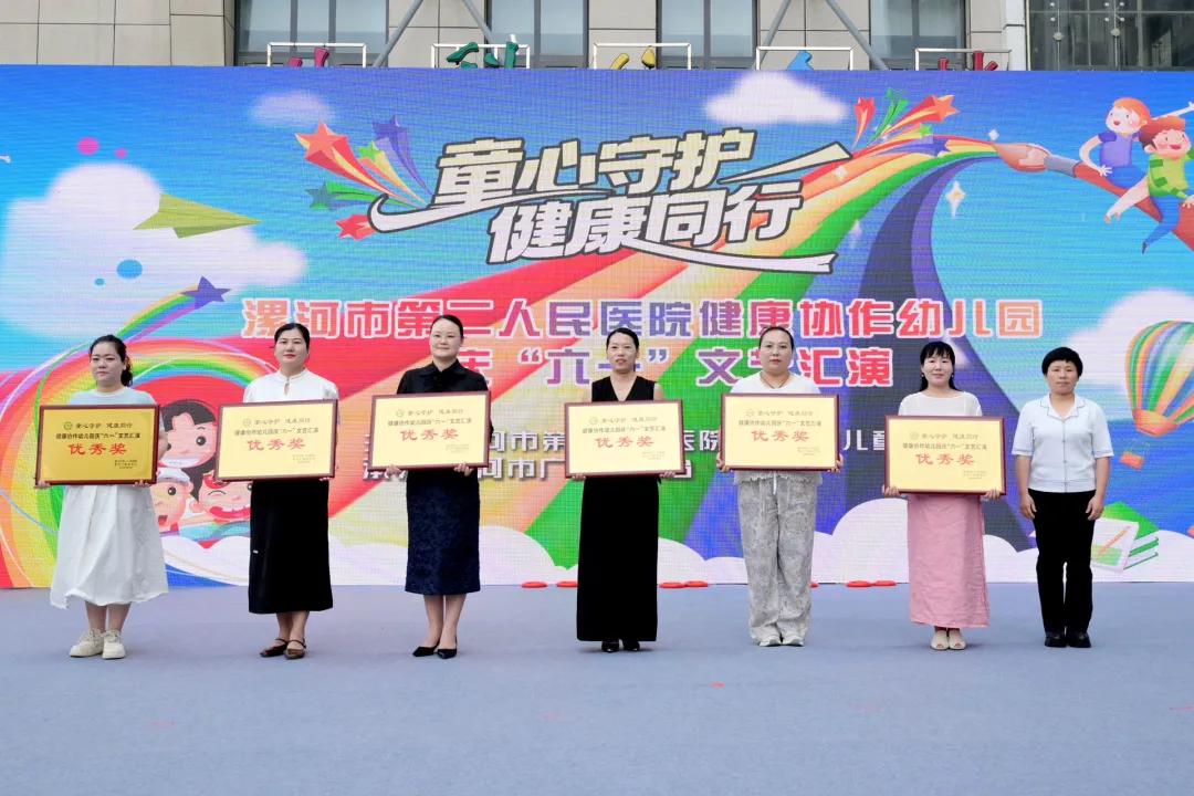 評委們現(xiàn)場評選出一、二等獎及優(yōu)秀獎。市二院黨委書記魏松,市廣播電視臺副臺長寧雅秋,市二院黨委副書記、院長胡海英,分別為獲獎幼兒園頒獎。