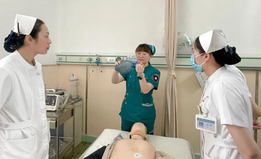 理論是基石,實(shí)踐則是檢驗(yàn)?zāi)芰Φ膽?zhàn)場(chǎng)。培訓(xùn)環(huán)節(jié)——危重癥急救技能強(qiáng)化操作演練。婁金金護(hù)士長(zhǎng)進(jìn)行示范,并對(duì)每位護(hù)士的實(shí)操逐一點(diǎn)評(píng)指導(dǎo),確保動(dòng)作及流程精準(zhǔn)到位。