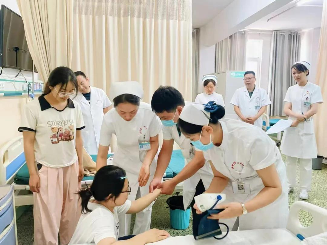 實戰(zhàn)模擬,檢驗應(yīng)急能力。演練在病房環(huán)境中有序展開。從護(hù)士巡視發(fā)現(xiàn)“患者”突發(fā)墜床,到第一時間啟動應(yīng)急響應(yīng)、評估傷情、實施初步救治、通知醫(yī)生、協(xié)助檢查、安撫患者及家屬,再到規(guī)范記錄、逐級上報,整個流程環(huán)環(huán)相扣。醫(yī)護(hù)人員反應(yīng)迅速、分工明確、協(xié)作緊密,充分展現(xiàn)了團(tuán)隊在突發(fā)事件中的高效處置與人文關(guān)懷。
