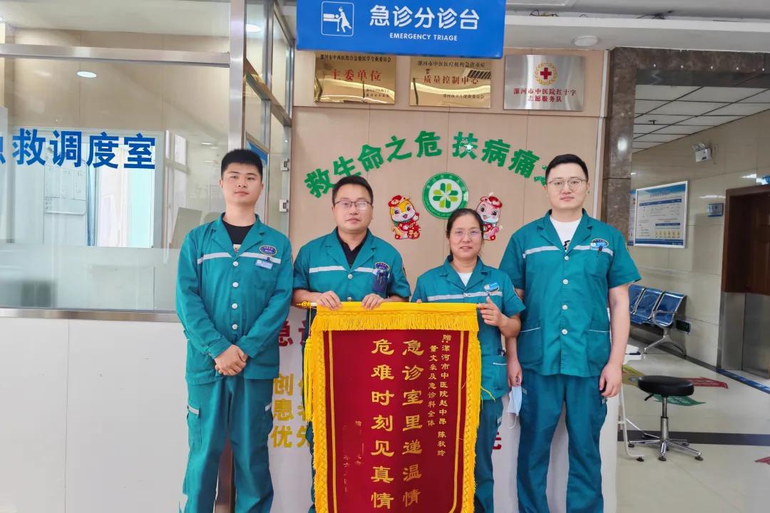 6月19日,患者家屬送來錦旗,對漯河市中醫(yī)院急診科值班醫(yī)護人員表示感謝!