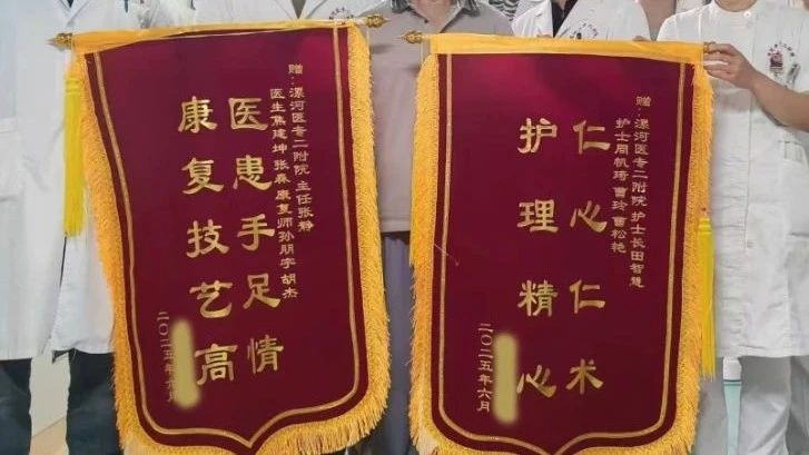 出院之際,患者特意送來兩面錦旗:一面寫給護(hù)理團(tuán)隊(duì),致謝“仁心仁術(shù),護(hù)理精心”;一面獻(xiàn)給醫(yī)生與治療師,感恩“醫(yī)患手足情,康復(fù)技藝高” 。這一面面的錦旗,是認(rèn)可,更是康復(fù)醫(yī)學(xué)科“以患者為中心”的生動(dòng)寫照。