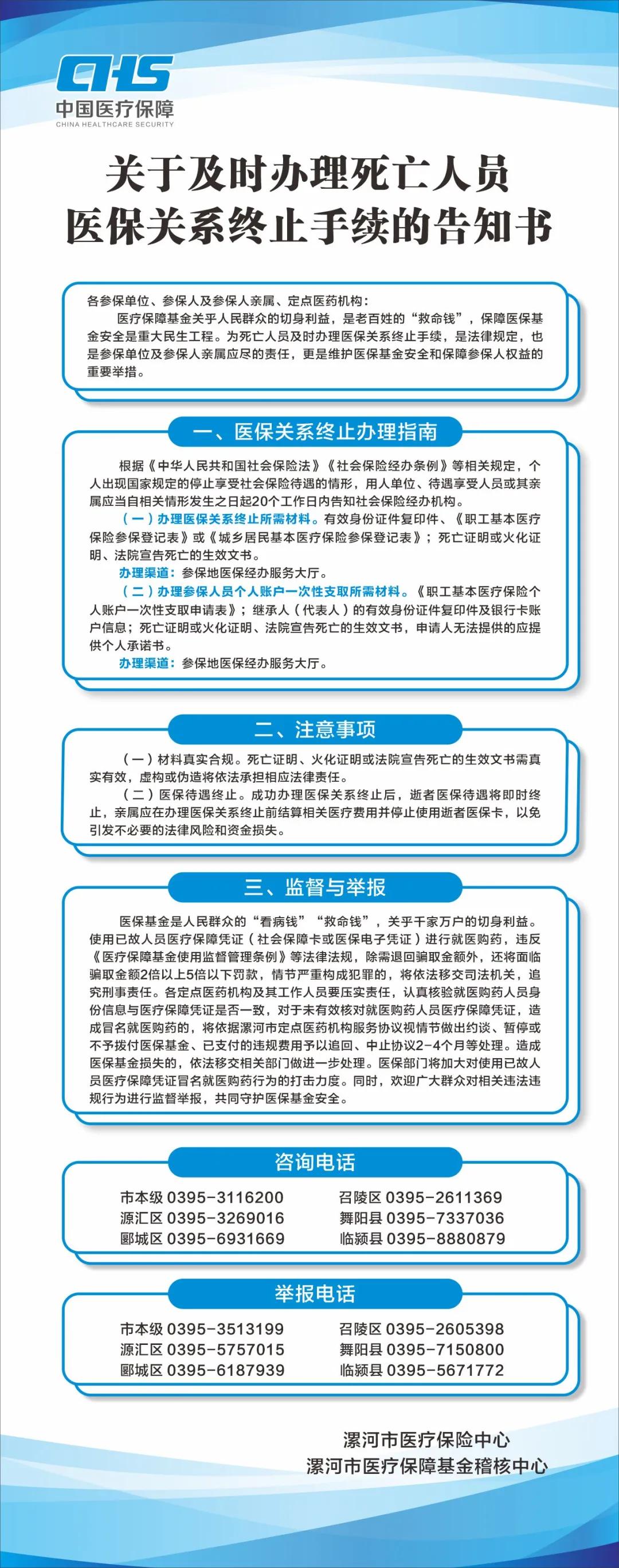 漯河市中醫(yī)院:關(guān)于及時辦理死亡人員醫(yī)保關(guān)系終止手續(xù)的告知書