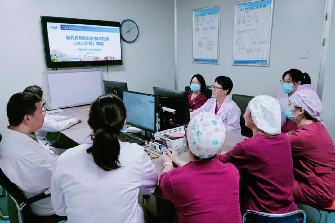 培訓會上,感染疾控科主任袁菲首先講解了基孔肯雅熱與登革熱診療知識,重點介紹其診斷依據(jù)、臨床表現(xiàn)、病史、實驗室檢查及治療原則,并針對二者異同展開對比分析;隨后詳細講解了基孔肯雅熱及登革熱相關(guān)防控知識及規(guī)范上報流程;最后針對防控策略,袁菲強調(diào)重點在于抓好“三個環(huán)節(jié)”:一是嚴格控制傳染源,疑似及確診病例需在24小時內(nèi)規(guī)范報告,急性期病例防蚊隔離期不少于7天,確診病例原則上需住院治療;二是全力切斷傳播途徑,強化蚊帳、紗窗等防蚊設(shè)施配備,全面清理蚊蟲孳生地,降低蚊蟲密度;三是有效保護易感人群,加強健康宣教,做好日常防蚊滅蚊工作。