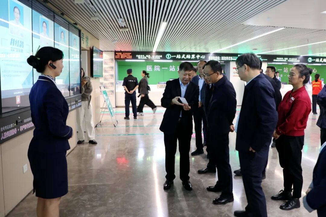 市人大趙耀嵩副主任一行首先聽取了市二院黨委書記魏松的工作匯報。魏松書記結(jié)合PPT內(nèi)容,圖文并茂介紹了醫(yī)院在優(yōu)化服務(wù)流程、檢驗結(jié)果互認、方便群眾就醫(yī)、醫(yī)?;鸨O(jiān)管、投訴端關(guān)口前移等方面的主要做法,表示醫(yī)院自開展集中整治活動開展以來,通過一系列舉措,實現(xiàn)了患者就醫(yī)多項業(yè)務(wù)“一次到位”,價格公開、服務(wù)可查、投訴可追,醫(yī)院就診人次明顯上升,患者醫(yī)療費用、群眾投訴顯著下降,群眾滿意度大幅提升。同時,市人大視察組一行實地觀摩了病人一站式服務(wù)中心、醫(yī)保一站式結(jié)算中心和人臉識別掛號系統(tǒng)。隨后,視察組一行來到二樓內(nèi)科門診,現(xiàn)場觀看了患者檢驗結(jié)果互認的操作流程。