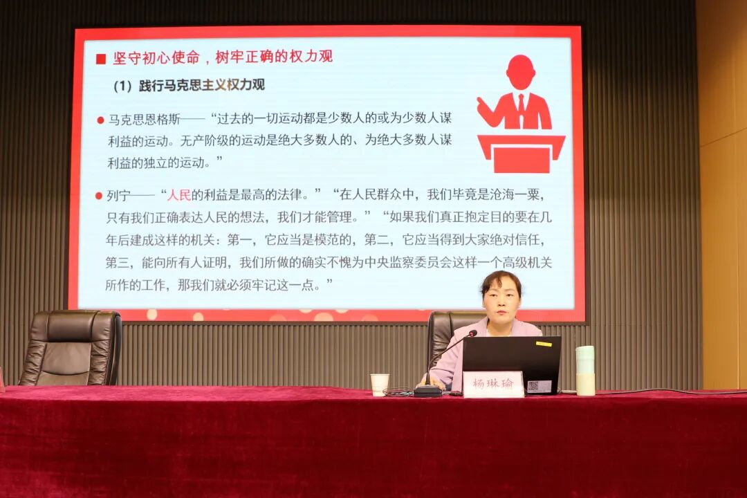 楊琳瑜以《鍥而不舍落實(shí)中央八項(xiàng)規(guī)定精神 牢固樹立正確的權(quán)力觀政績觀事業(yè)觀》為題,從堅(jiān)守初心使命,樹牢正確的權(quán)力觀;堅(jiān)持為民造福,樹牢正確的政績觀;堅(jiān)定實(shí)干擔(dān)當(dāng),樹牢正確的事業(yè)觀三個方面,為與會人員帶來了一場既有理論高度又有實(shí)踐指導(dǎo)意義的專題輔導(dǎo)。