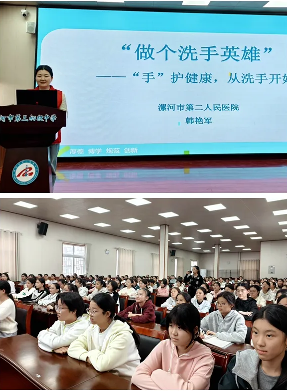 此外,市二院感控辦工作人員專程走進市第三初級中學,為學生們帶來了一場別開生面的手衛(wèi)生知識講座。工作人員以“手”護健康為切入點,通過專題講座、播放宣傳視頻、講解洗手重要性、演示“七步洗手法”等環(huán)節(jié),深入淺出地向同學們闡述了洗手這一最簡單、經濟且有效的健康守護方法,有效提升了青少年群體的手衛(wèi)生知識與自我防護能力。